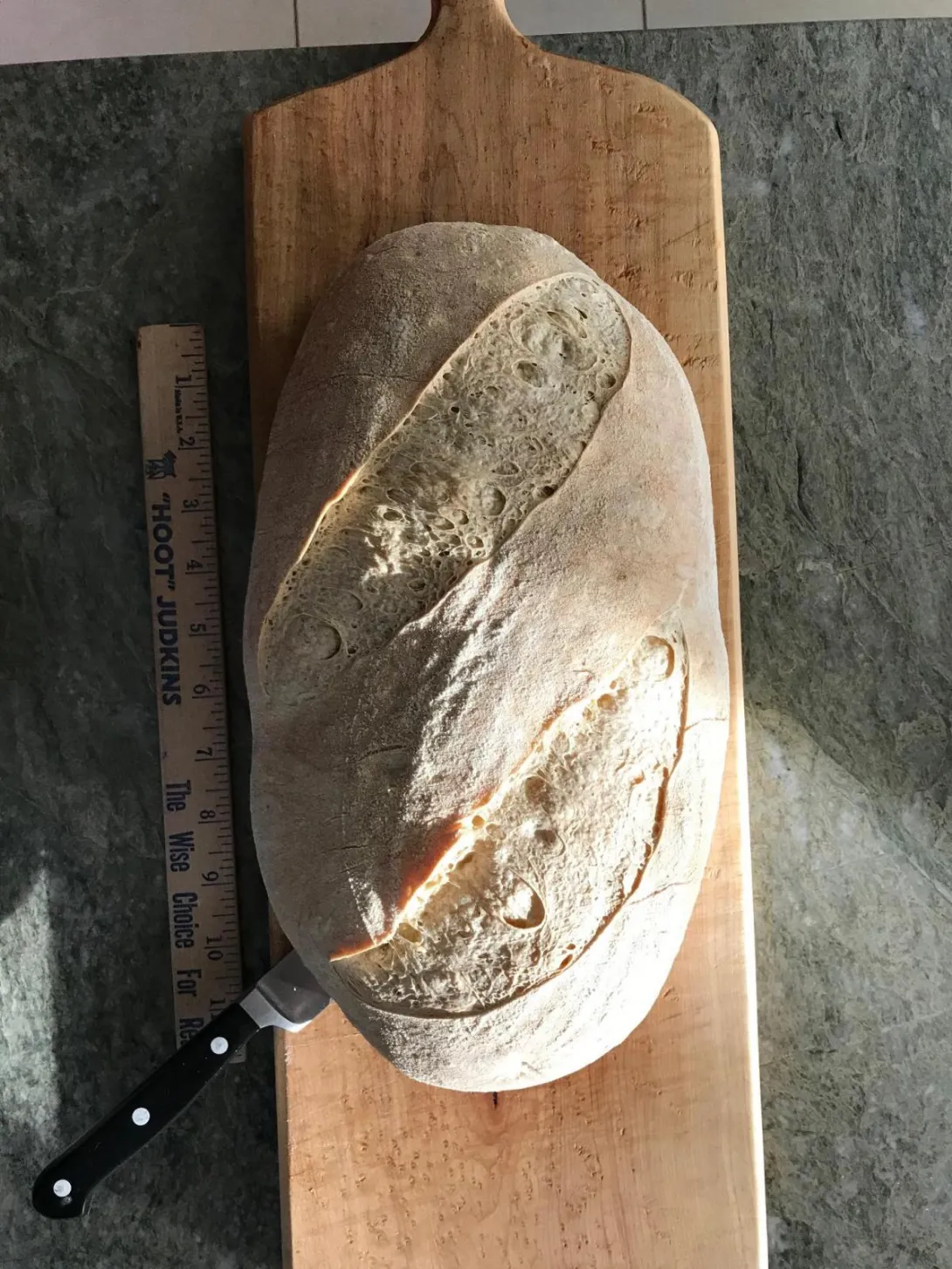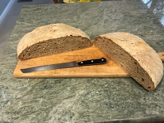 This is a 3.3 lb. loaf that is mostly whole wheat with some sprouted rye and sprouted spelt (~5%??)