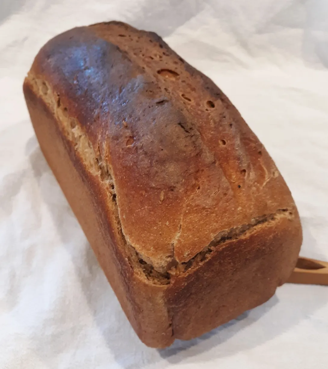Kümmel-Bier Brot (Caraway Beer Bread) from The Rye Baker book. This bread is for lovers of caraway seed (sorry Benny!); it has a whopping 2% caraway seed. The bread is 50% rye and 50% first clear or high-gluten flour, barley malt syrup, and beer for half the liquid. The recipe calls for 2:1 white/medium rye to approximate German 997 rye flour. I did not have any white rye flour but used all medium rye (KA brand) and increased the hydration from 60% to 65%. Vital wheat gluten was used to boost KA bread flour to 14% gluten; beer was Destihl Weissenheimer hefeweizen.