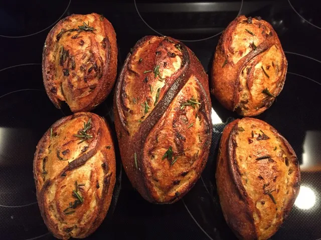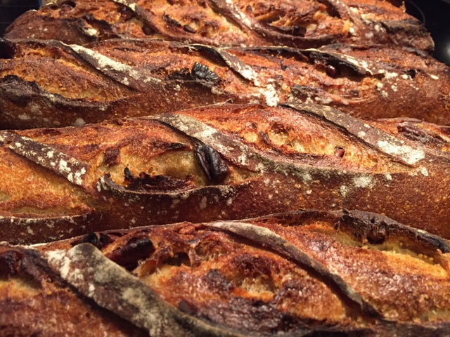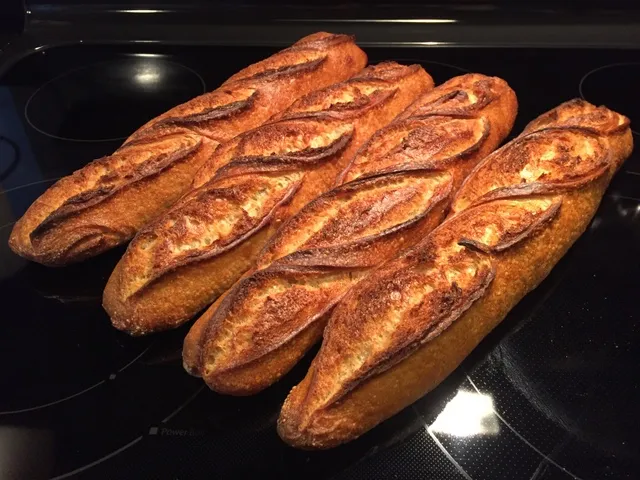I've posted these before, the Hamelman sesame semolina batards alfanso-style - meaning subbing out the very liquidy bread flour levain for my very liquidy rye flour levain. Delivering 15% rye flour (all through the levain) to boost the flavor in this bread. The composition of flours is; semola rimacinata 60%, bread flour 25%, and rye flour 15% @67% overall hydration.