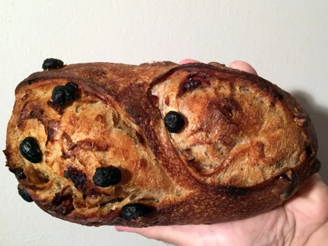 Sure, as it has been months since I tried these out once before. Sold at Ken's as demi-baguettes. As long as I'm on my thang about changing baguettes to batards, and vice versa, why not? Those black things on top are/were golden raisins, not black jelly beans...