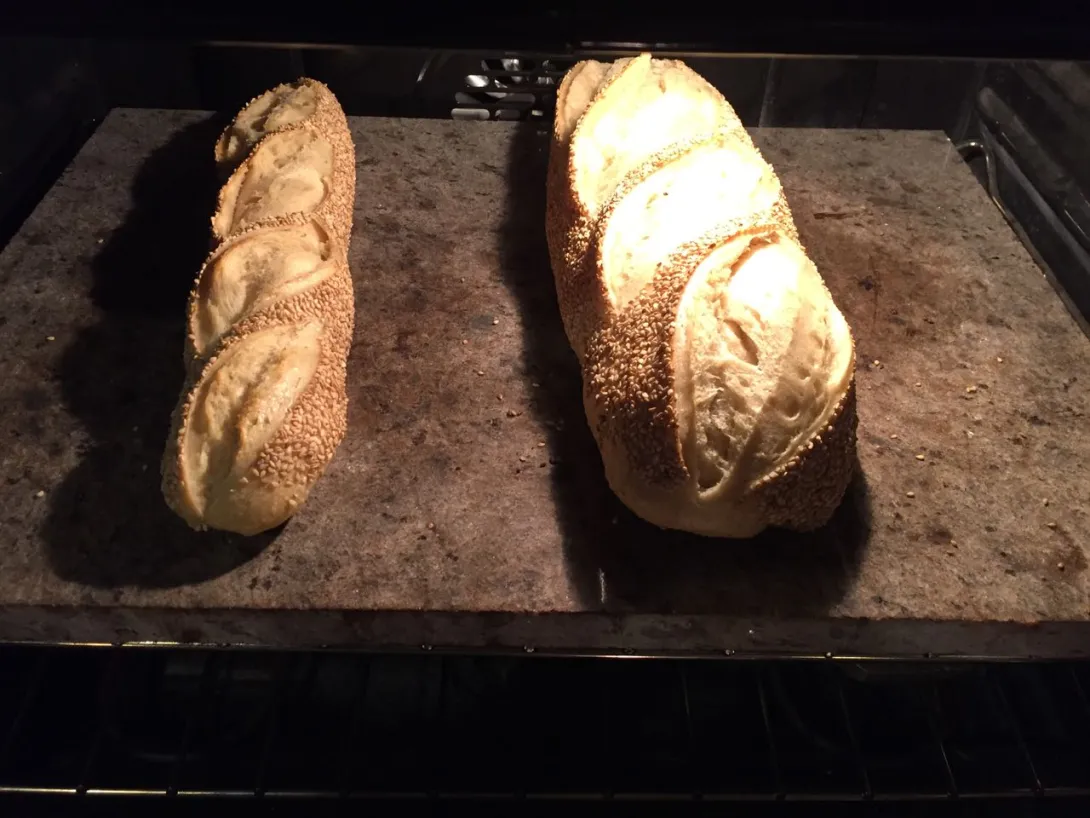 Weekend Bakery Semolina and Sesame Baguettes, alfanso style