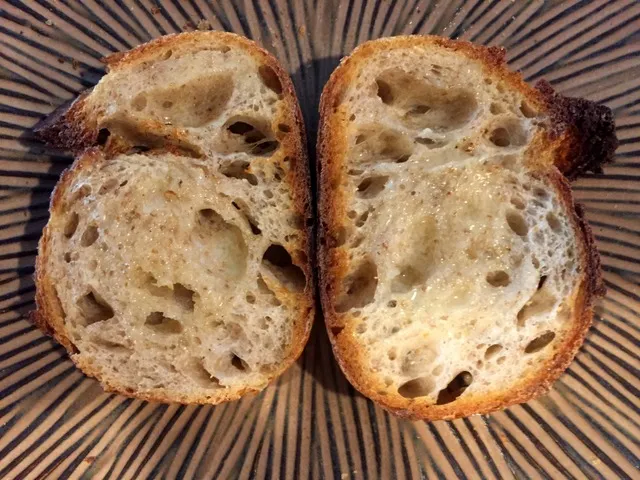 In the spirit of Abel's Ziggy scoring, which I've done few times now - I decided to try a cross cut, "x's" all down the length of the dough. And wound up with two distinct looks.