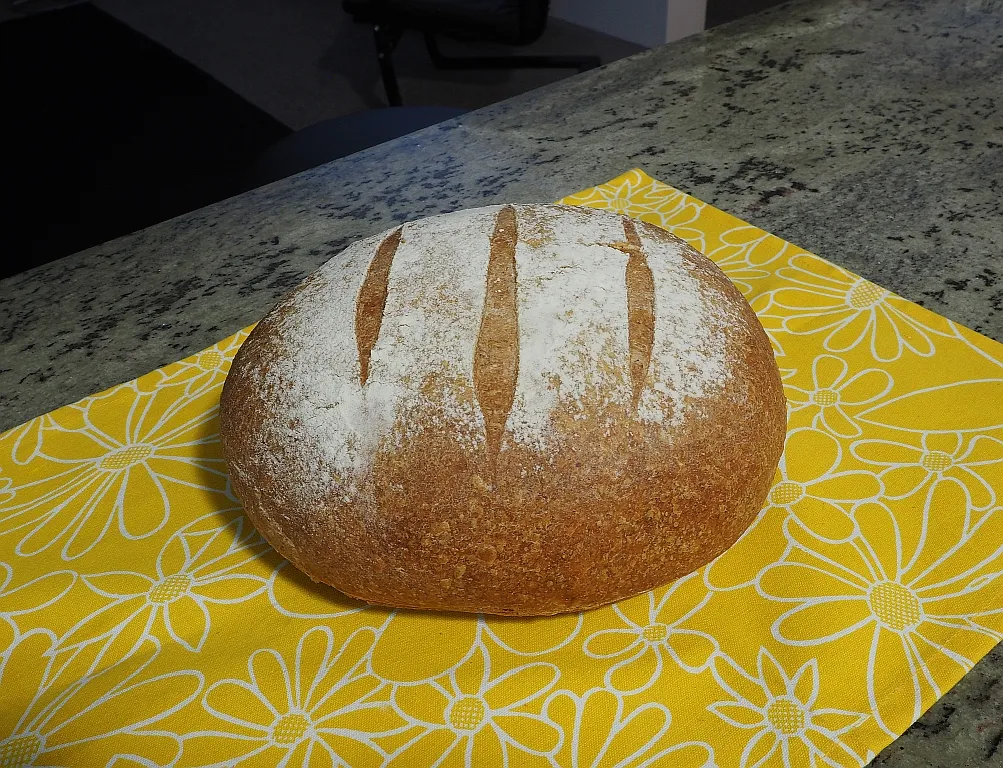 370 g bread flour, 8 g salt, I added 3 tablespoons rye flour because I thought the dough was a bit too wet.