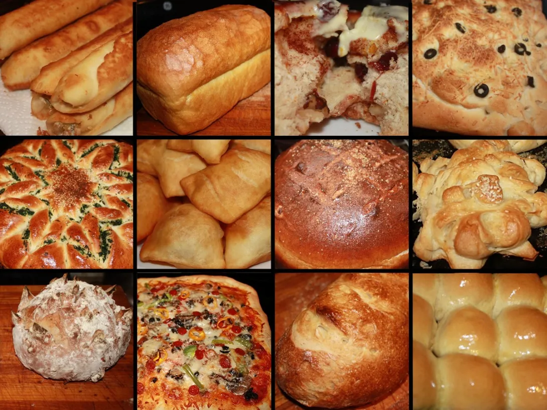 Artisan Sourdough Mini Boule, Pepperoni Pizza, Traditional Alaskan (Yukon) Sourdough, and White dinner rolls