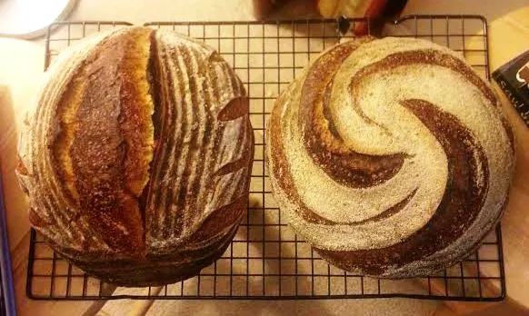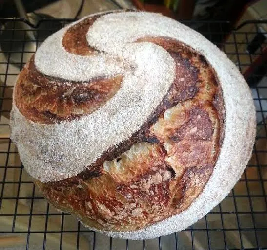 Abe, thanks for inspiring me with your scoring pattern! The boule is exactly your pattern, with a few extra very shallow swirls
