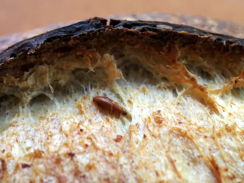 This one was a dog day. Baguettes with poolish from Hamelman, but a little bit wetter. This baguette stuff is tricky.