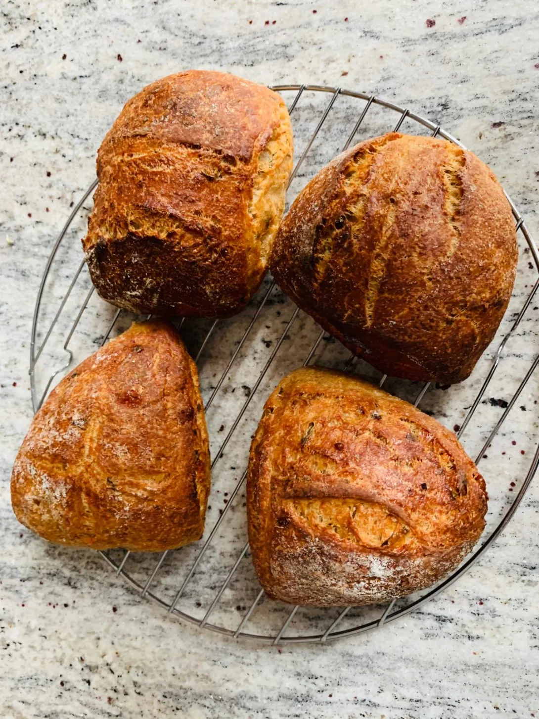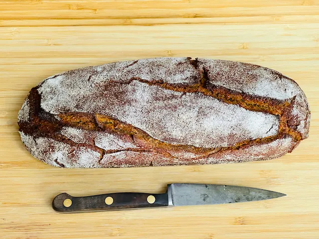 This is an older way of baking bread, probably unique to Germany and other German speaking countries. The dough is placed and baked in a wooden frame (Holzrahmen). I used the dough of a basic miche but placed in a frame made of maple wood. It makes a wonderful moist bread.
