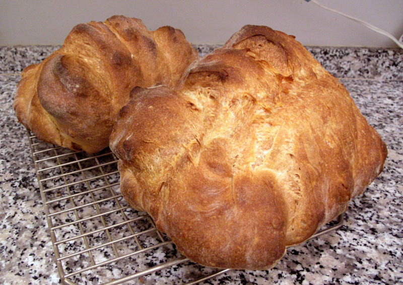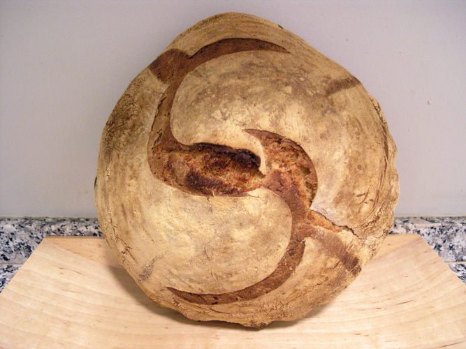This is a crazy looking bread from the town of Matera in Southern Italy made with durum flour and a natural sourdough starter… I had tried making this bread before with the durum flour, but made the dough too wet so it wasn't very easy to shape. This most recent attempt was reasonably successful. What makes this bread interesting is that it is shaped after the final proof and dumped into the oven. Please see the links below about this bread and how to make it...