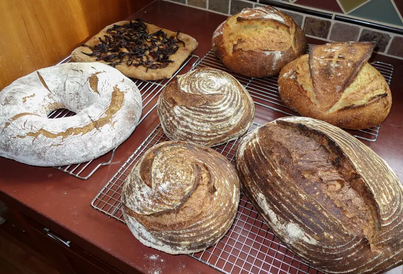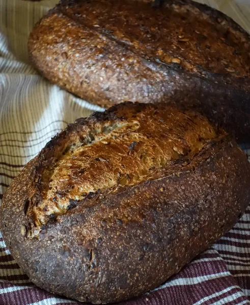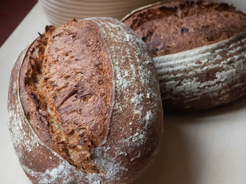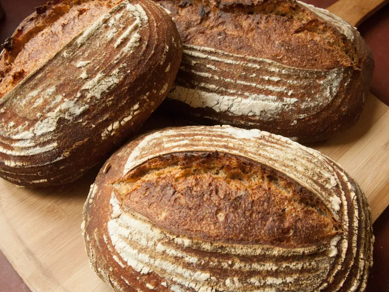 About a month ago I wrote about my attempts to reproduce a Pane di Altamura that I tasted on a visit to Italy. For the past few weeks I have been working on the formula and on my technique, and I’m happy to post my most recent results, which are much closer to the original look I was after. I researched the techniques a bit more and found some information I had missed the first time around. The key one was that I had not achieved sufficient gluten development.