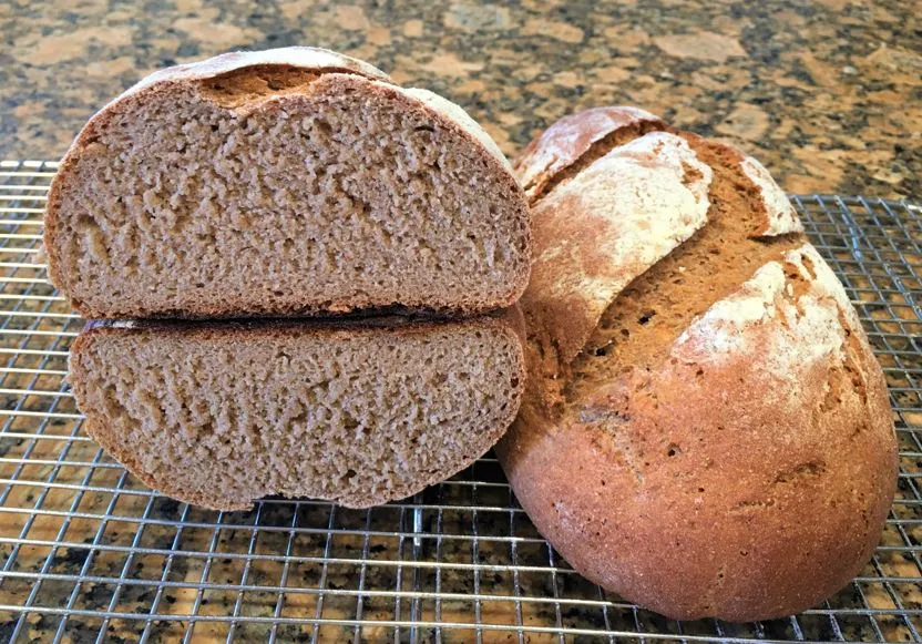 This is Whole Rye and Whole Wheat from Bread - A Baker's Book of Techniques and Recipes by Jeffery Hamelman
