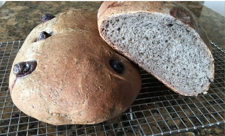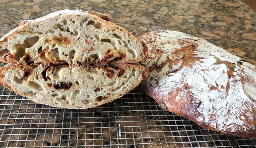 This latest bake is Pane Con Pepperoncini, Olive, E Pomodoro from Living Bread by Daniel Leader.