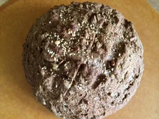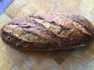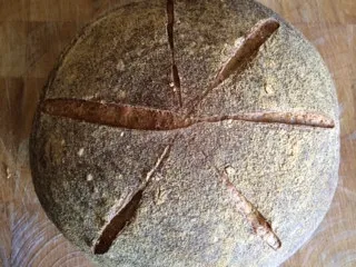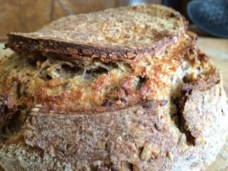 My experiments continued this morning, as I baked another dough I had frozen very recently. This was a variation of Khalid's recipe that I have made a couple of times. I really enjoy this bread as it has lots of different grains in the soaker, and it is ready to go so quickly. I defrosted the loaf yesterday in the fridge and took it out at 6 a.m.