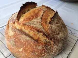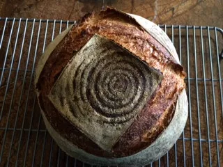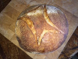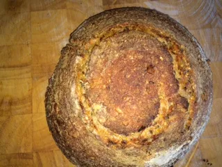 I wanted to try a seeded sourdough with a flax seed soaker, so i found the recipe below. I made a number of variations along the way, due to preference and timing. I noted the changes I made at the right of the original recipe.I wanted more of a whole wheat loaf, so I changed the recipe to add much more whole wheat and used a whole wheat starter. My husband and I really enjoyed the result. It was crusty, but chewy, and the seeds inside really added a lot of tangy taste to the loaf.