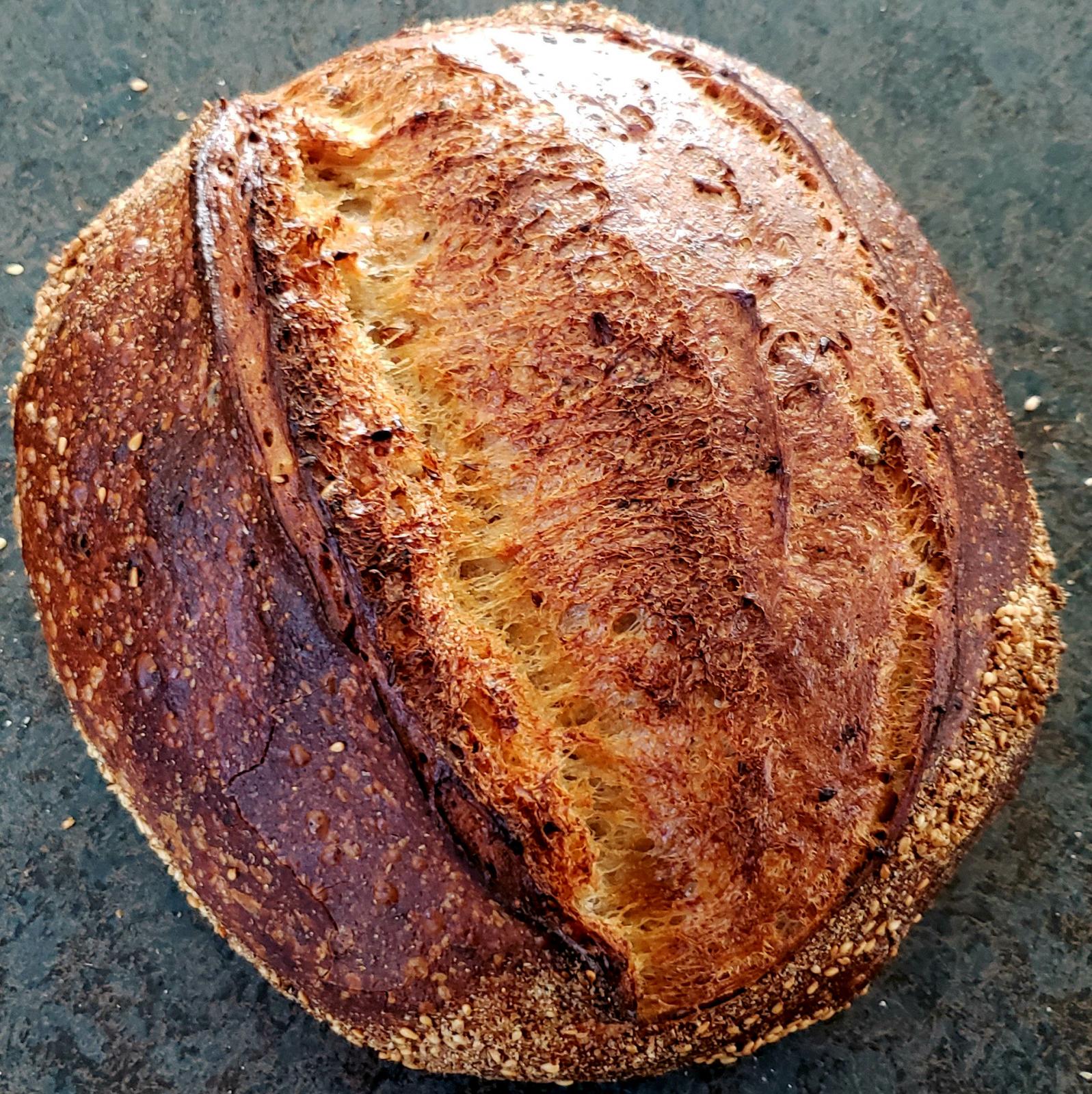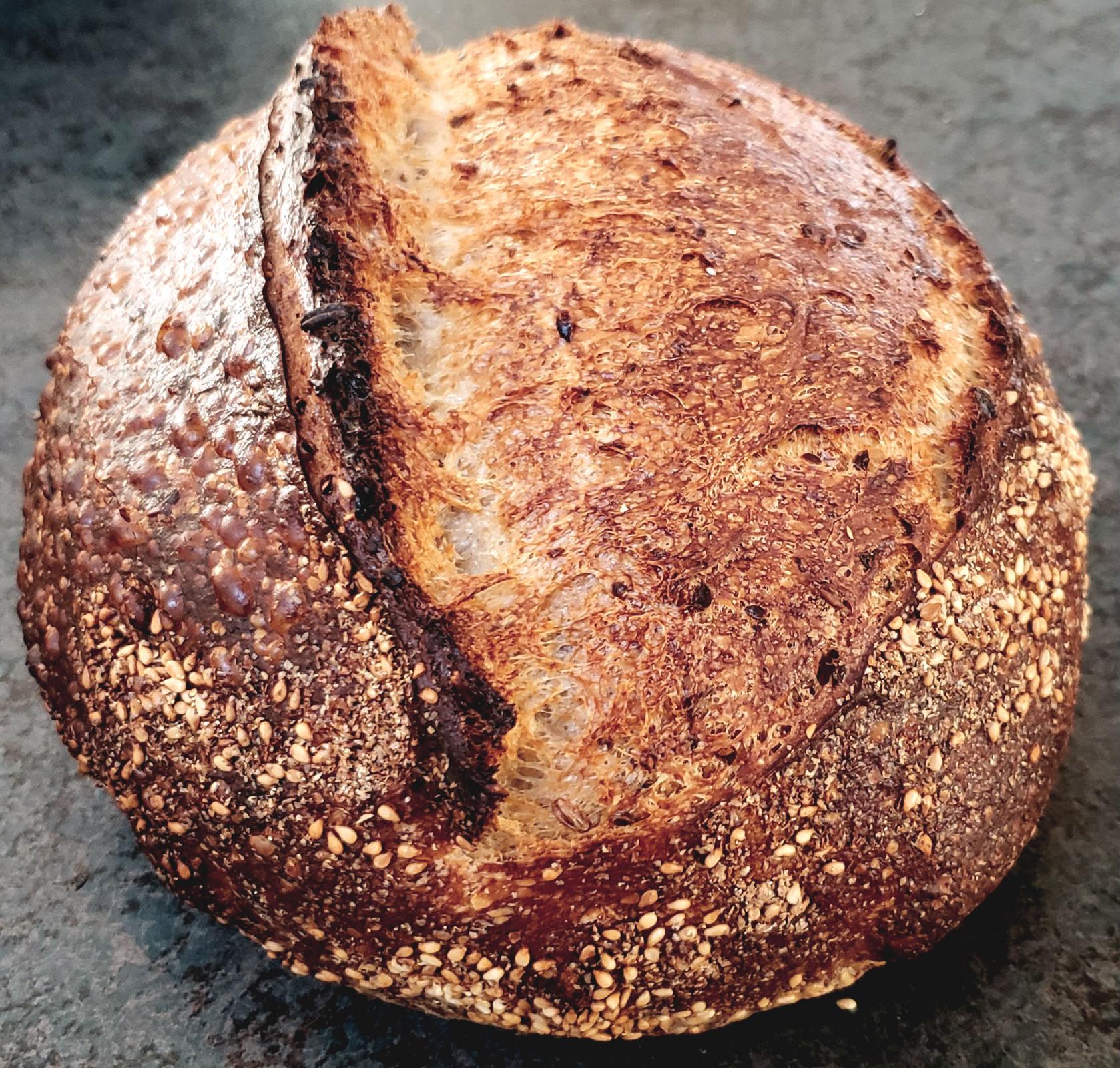 30% Rye Seeded Onion Sourdough with Dark Malt Beer