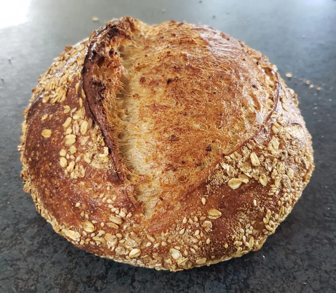 This is a variation on Chad Robertson's Oat Porridge Bread in his book Tartine 3. It is essentially the same bread but with slightly less oat porridge and the addition of some cooked whole oat berries. It is one of my favourite breads.