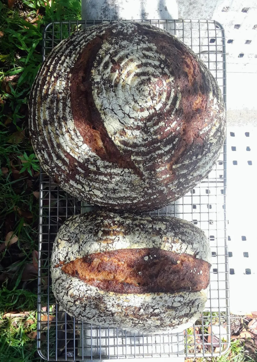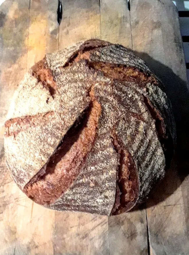 I've been needing to re-stock on whole wheat flour for a while, but I haven't been able to a good a good whole wheat flour from a local or regional small farm/mill. After a number of weeks getting by without, doing a lot of porridge loaves for something interesting, I caved and bought a bag of Bob's Red Mill whole wheat to tide me over. It seemed a good occasion to try another whole wheat heavy loaf.