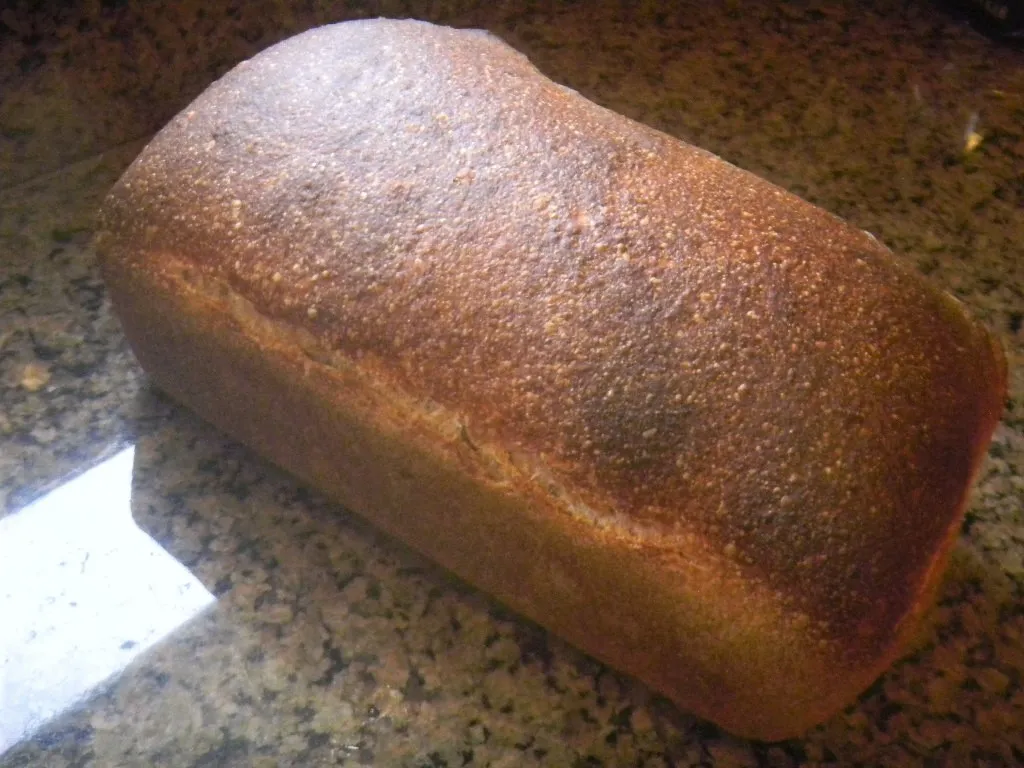 I’m looking for any excuse to make bread even if I can’t eat it as much as I would like – at least not yet at any rate. My wife was out of her store bought, fake, whole wheat Oroweat bread that she loves so much so I was able to bake her a loaf of SD and poolish bread to tide her over.