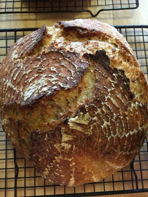 I made this bread back in June and really liked it then. It was one of the breads I wanted to repeat. Because of time, I changed the method and ingredients a bit and used a bit less cereal and water. For some reason, this dough seemed extremely wet when it came to shaping but it is hard to compare it to the other dough because I bulk fermented that one in the fridge, shaped it cold and proofed it on the counter. This one was bulk fermented in a warm place and proofed in the fridge. I think I got a bit more oven spring with the first method but both recipes turned out quite nice.