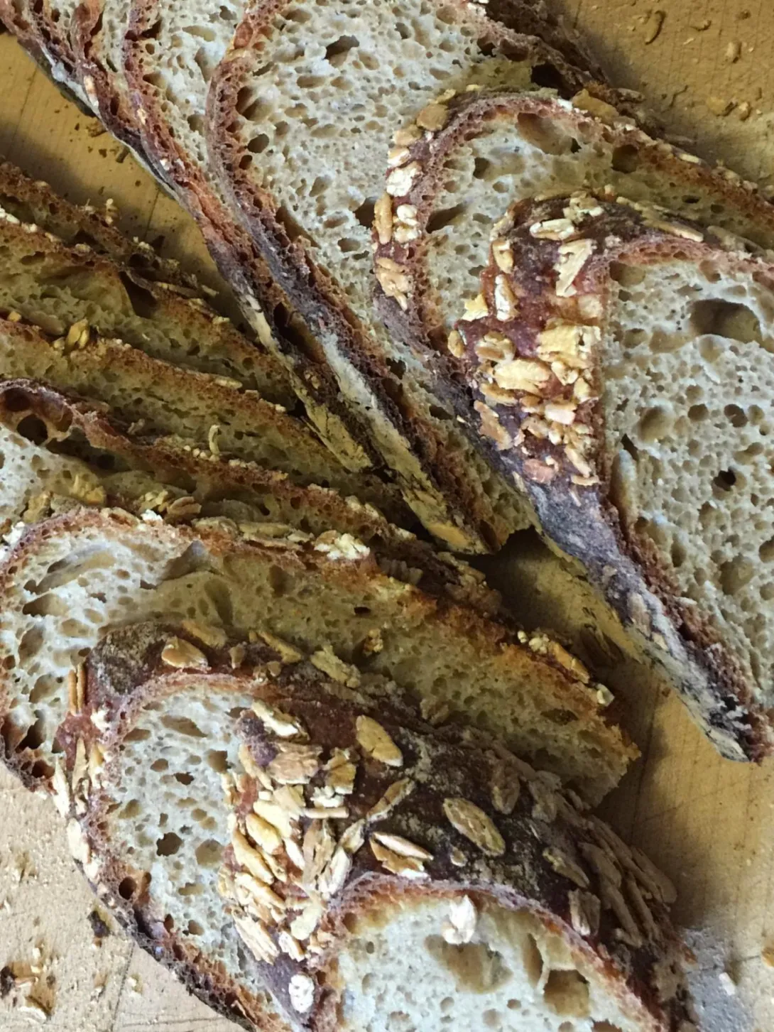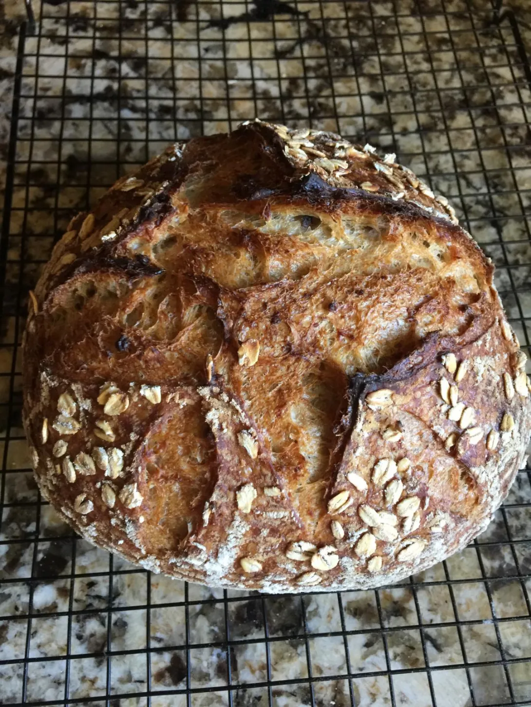 I changed the method a bit to allow for an autolyse with just flour but the dough was really stiff and I probably should have added the oat soaker in at the same time. Anyhow, this was my method which differs a bit from the book.