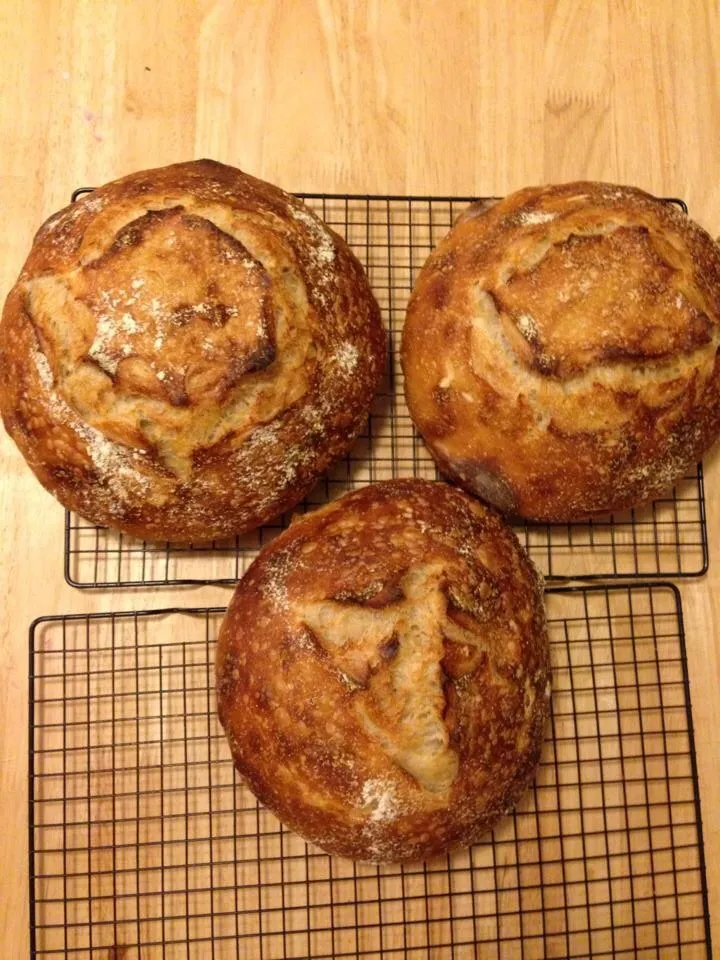 Following Chad Robertson's recipe, in Tartine, I made a fantastic walnut bread last night. It is super delicious plain this morning. Not sure if I would make sandwiches on it or not but I suppose I will find out soon. I used 200 grams of white whole wheat and 800 grams of all purpose. I burned a bunch of the walnuts (or at least I think they were too dark) so these loaves don't have the full 3 cups but as you can see there are plenty of nuts in the crumb.