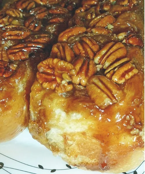 We love pecan sticky buns. We nibble at them for breakfast, lunch, mid-afternoon snacks, and dinner dessert--not all on the same day, mind you.