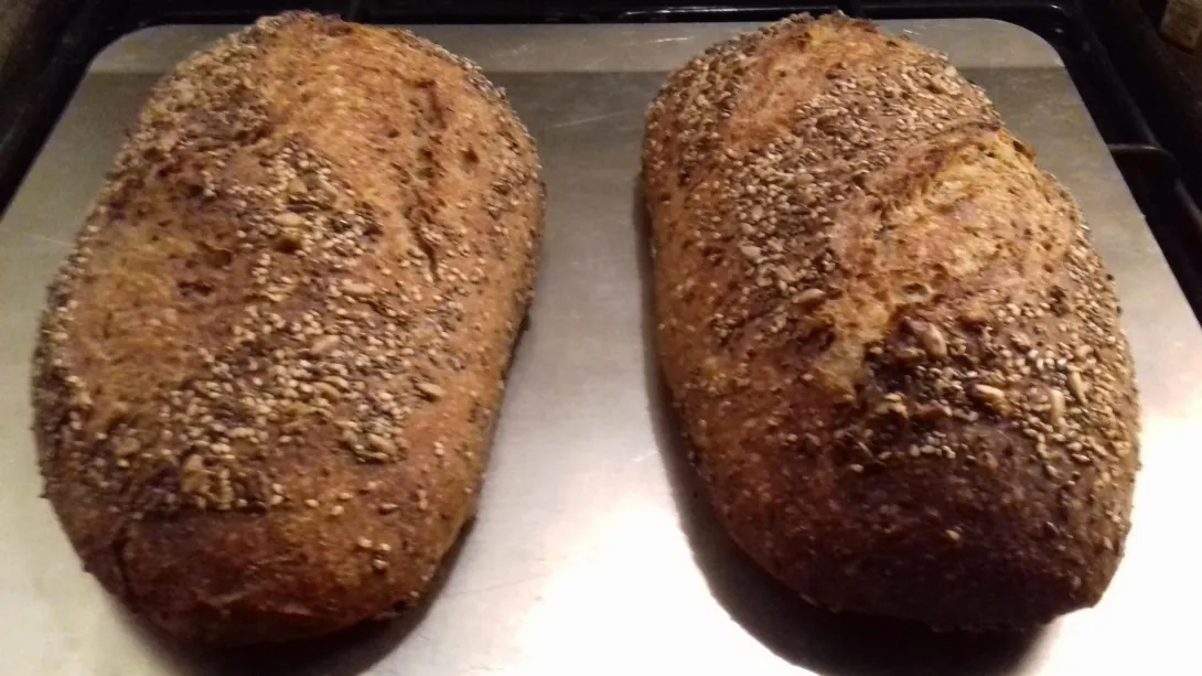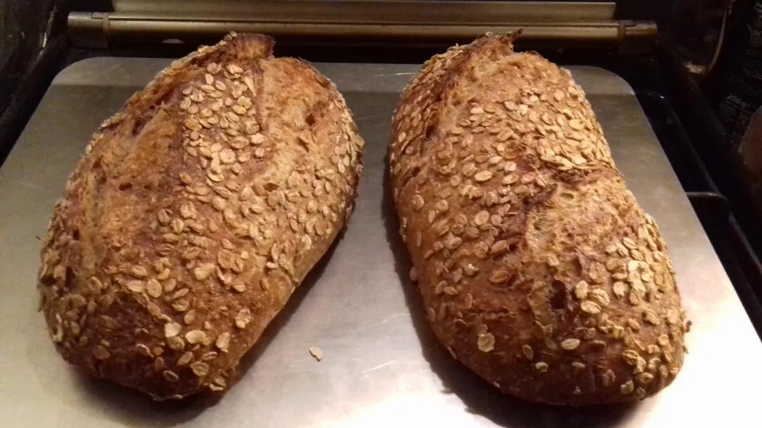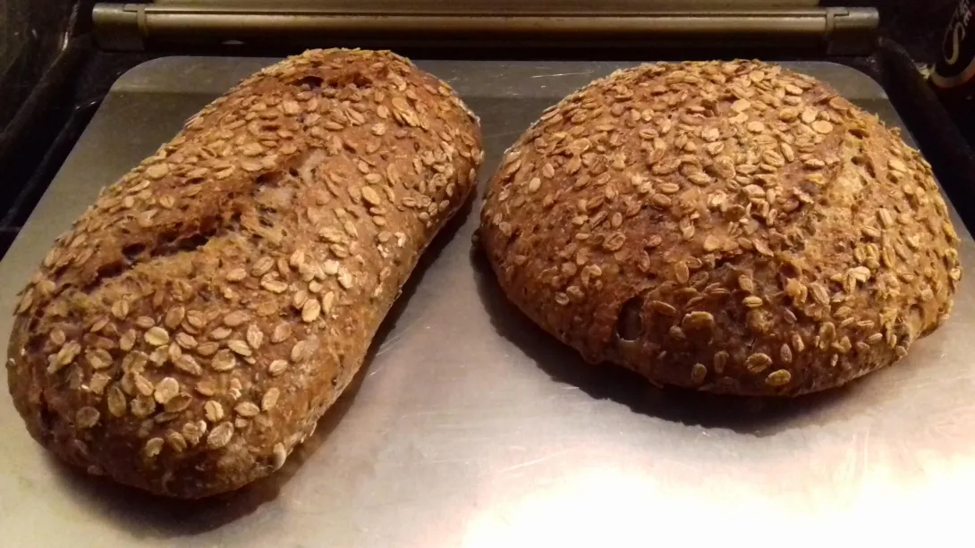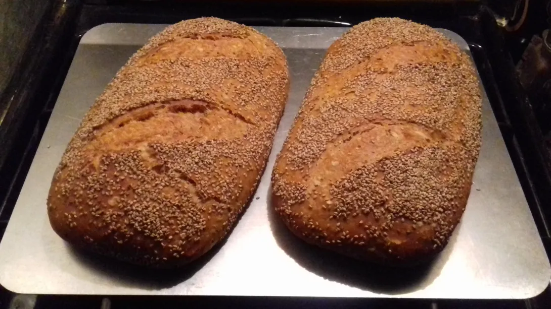 First build Thursday night; had lots of 100% hydration rye starter, so used that, which most certainly affected the finished loaves. Fed 12g at 1:2:2.