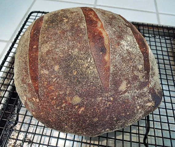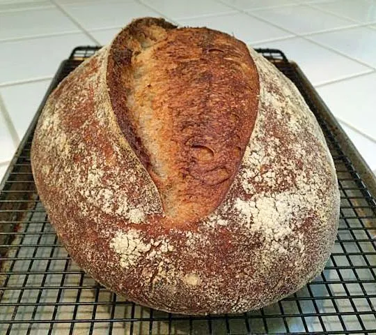 Yesterday, I baked a bread based on Ken Forkish's "Pain de Campagne" from Flour Water Salt Yeast. Forkish's is basically a white bread. Mine is made with 500g AP, 200g WW and 100g Rye in the final dough. (The levain contains 160g AP and 40g WW flours.) I also omit the instant yeast. We really like this bread.