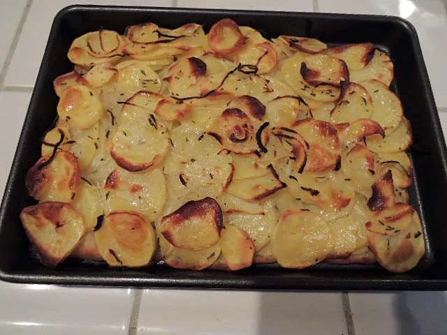 Since reading Leader's recipe, I also acquired Maggie Glezer's Artisan Breads, which also has a recipe for potato pizza. The pizza dough recipes are different, but the potato topping ingredients are essentially identical.