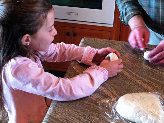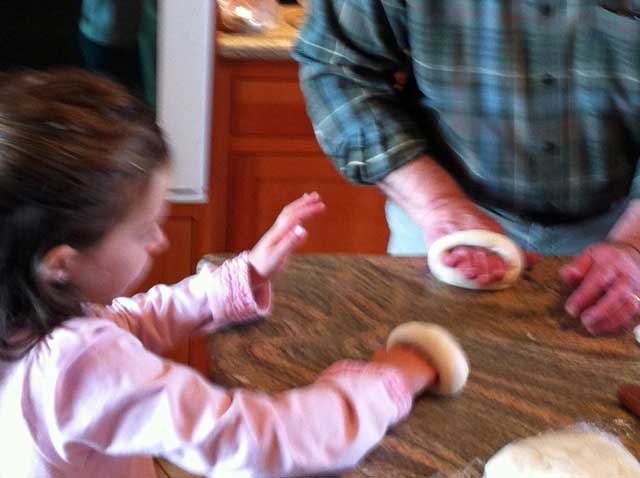 Naomi had had an introduction to bagel shaping by her great Great Uncle, Glenn, a few weeks ago. She was a quick learner. Now, little sister wanted to make bagels too.