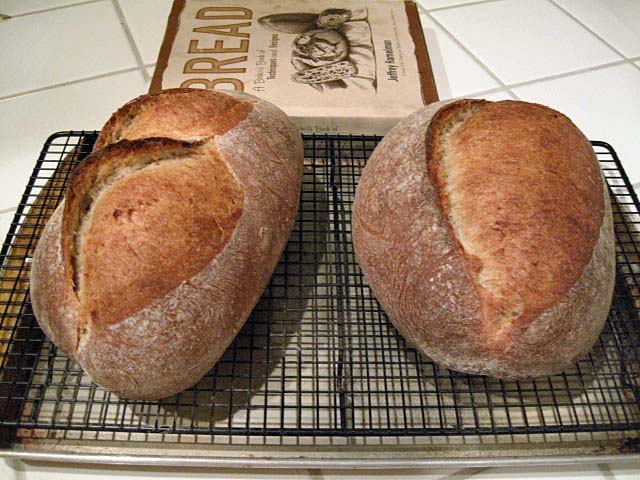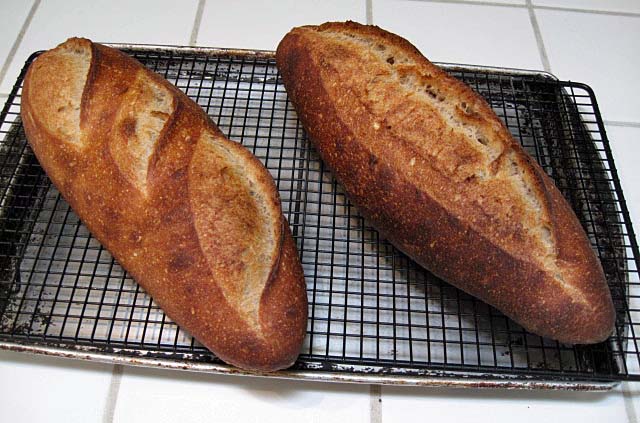 The dough was basically version 6. I put my stock starter through 3 builds of 75% AP and 25% WW at 50% hydration. The builds were fed at approximately 12 hour intervals, and the third build was cold retarded for about 14 hours then fermented at 85 dF for 3 hours before mixing the dough to make 2 kg. After dividing and shaping, all products were cold retarded again before final proofing and baking.