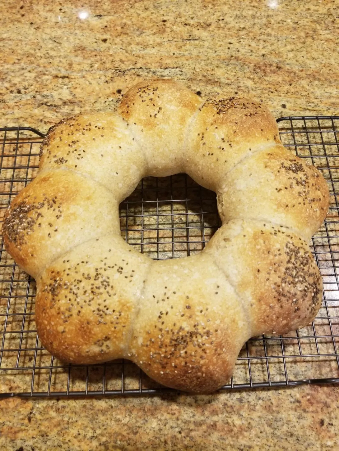 These little sandwich loaves are are made with pretty similar amounts of bread, WW and rye flours. They are just right to slice lengthwise, stuff with goodies and then cut in half for two good size sandwiches. Baking these pretty regularly lately.