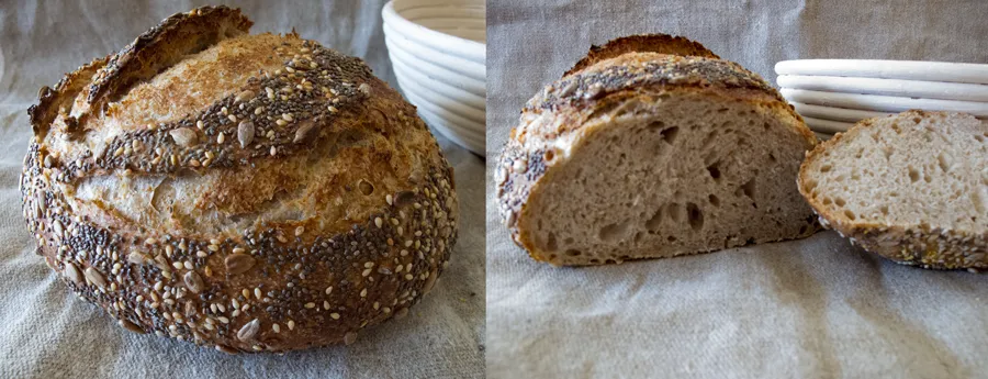 Nothing really special or adventurous here. Baked some seeded loaves and kept one for some cheese that I thought would be a perfect pairing (it was). As I sat down in the sunshine and took the first slice, I decided to take a picture to share or at least to serve a record for myself.