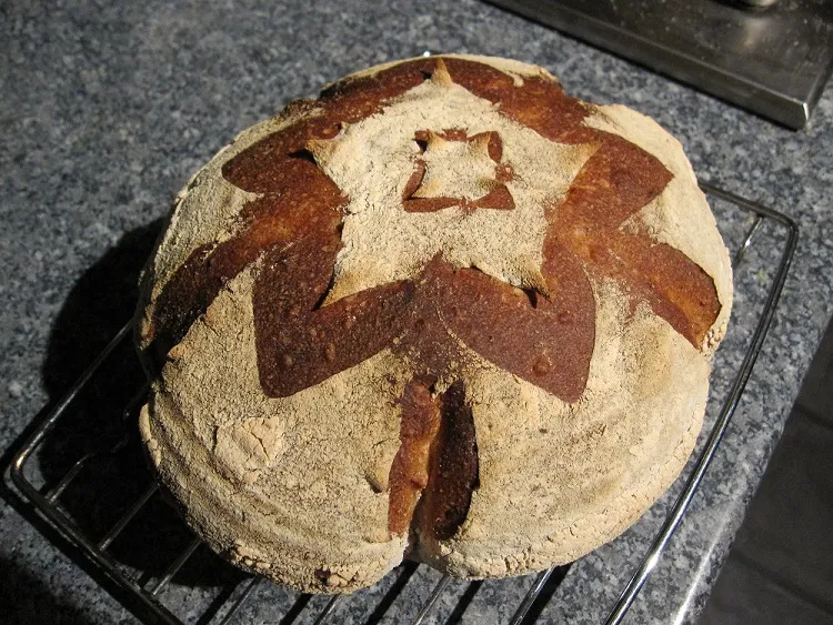 Came out pretty well, nice texture and gentle malty flavour from the extract together with the rye starter depth.