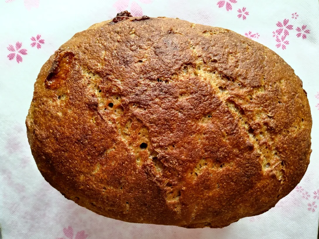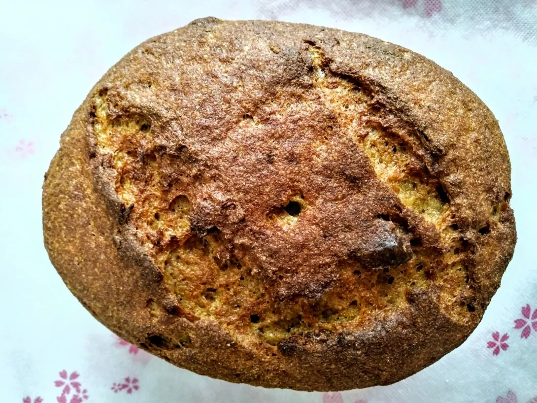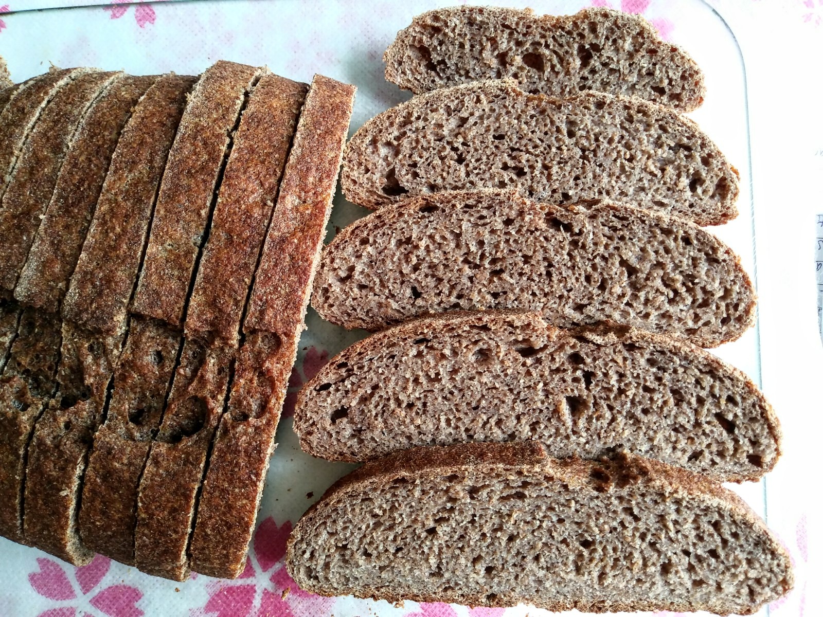 Since I started working with white dough, I’ve come to recognize the importance of gluten development in bread. Whole grain dough tends to be stiffer even when fully hydrated, which gives a delusion that dough mixing is neglectable. Wrong. I was so wrong! Two rounds of 3 minute mixing and 1 set of lamination contributed enormous elasticity and extensibility. The dough felt completely different and it does show in the crumb.