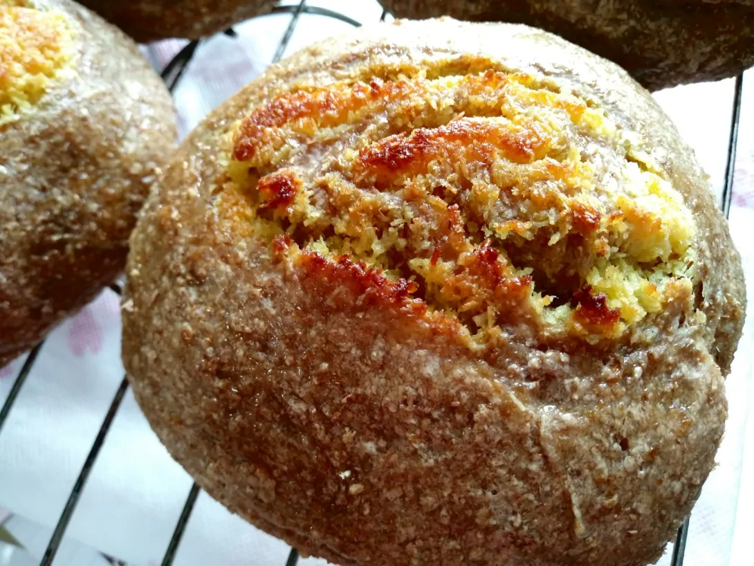 I feel like I should share a HK style bread recipe on this site as someone from HK so when my mom requested some coconut buns, I decided to make it immediately. This is a kind of very typical and popular enriched bread in HK and though I only crave it at very rare occasions, my mom adores it wholeheartedly. I modified the traditional recipe by nixing butter and decreasing sugar in the dough while adding sourdough and tang zhong for flavour and tenderness respectively. An egg is skipped in the filling and condensed milk replaced the sugar.