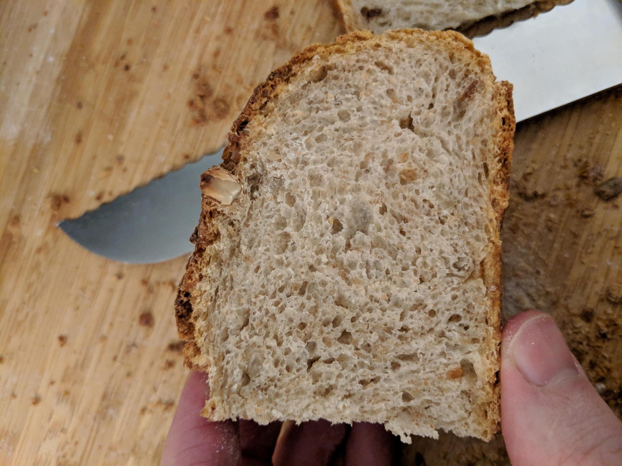 I recently took out Martin Philip's Breaking Bread from the library, and this is the first recipe I've tried from it. It's 50% whole wheat (home milled), and has oats, millet, and sunflower seeds. It was a tasty loaf. My short list of recipes to try next from the book are his boiled cider rye bread, beekeeper's pain de mie, and Irish levain. Has anybody tried anything from this book yet?