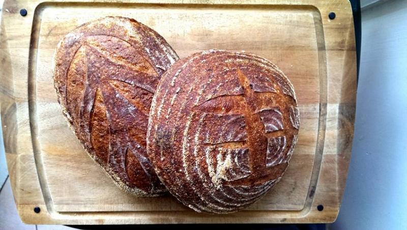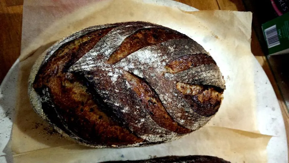 added 25% oak smoked flour to HP and AP flour. 75% hydration and used a white spelt starter.