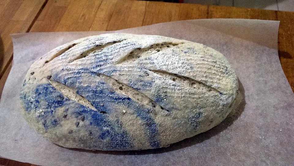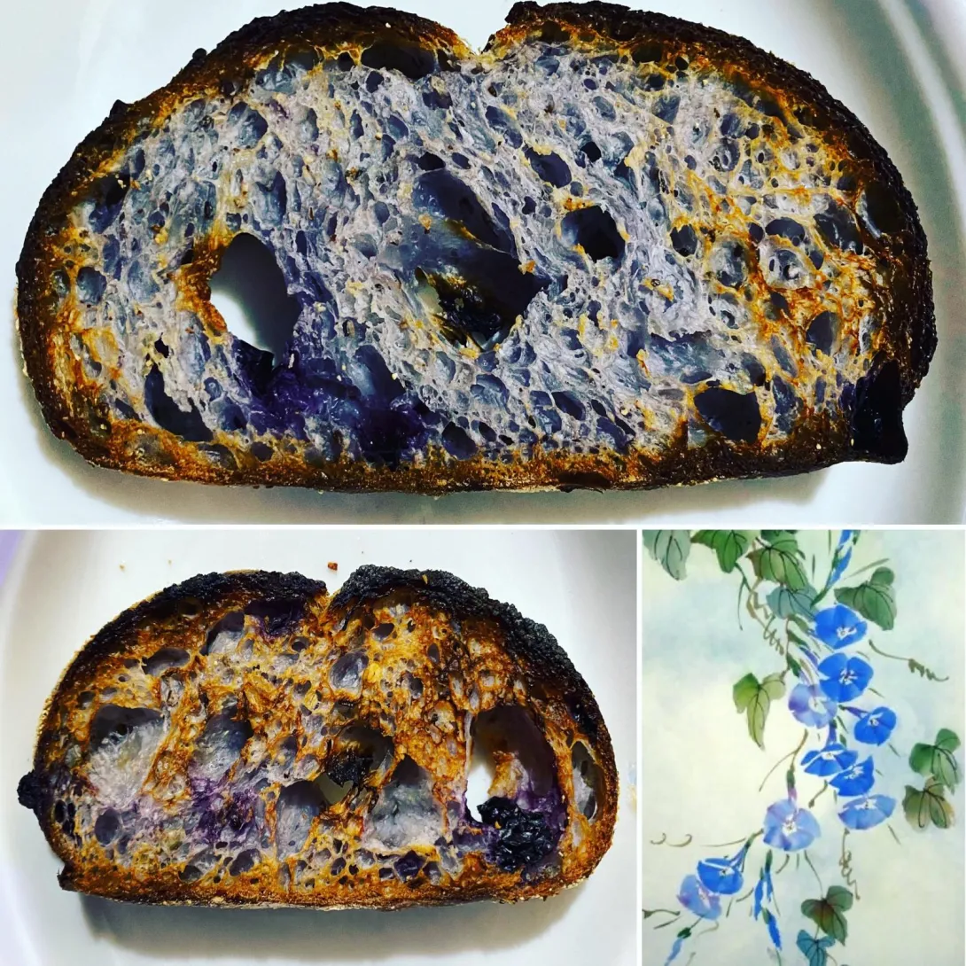 And I baked a blue or bluish sourdough bread.. with butterfly pea flower and blue berry.