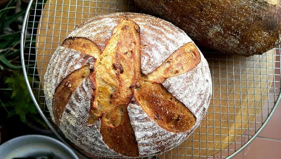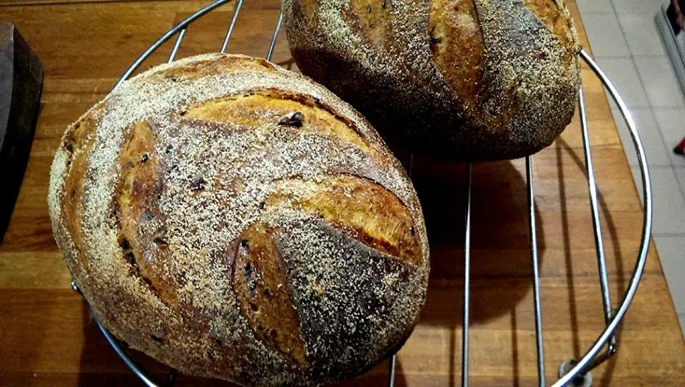King of fruits Sourdough bread with roasted butternut pumpkin and black sesame seeds