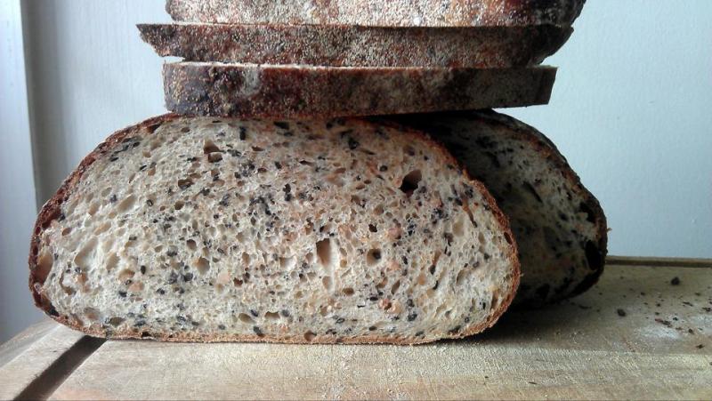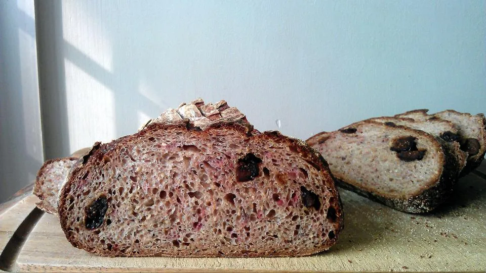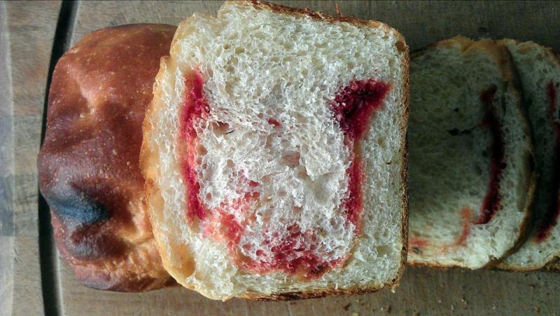 today i toasted a slice of the Cherry YW Sprouted winter wheat SD with roasted balsamic strawberries, sesame seeds , purple carrot and black mission fig bread. i got a whiff of balsamic tang as i opened my mini toaster .. caused my mouth to water! yum! i thought with a smile :)