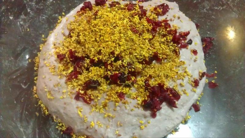 this is another version of red wine(Chateau Cap De Faugeres) cranberry sourdough using yeast water and osmanthus flower...