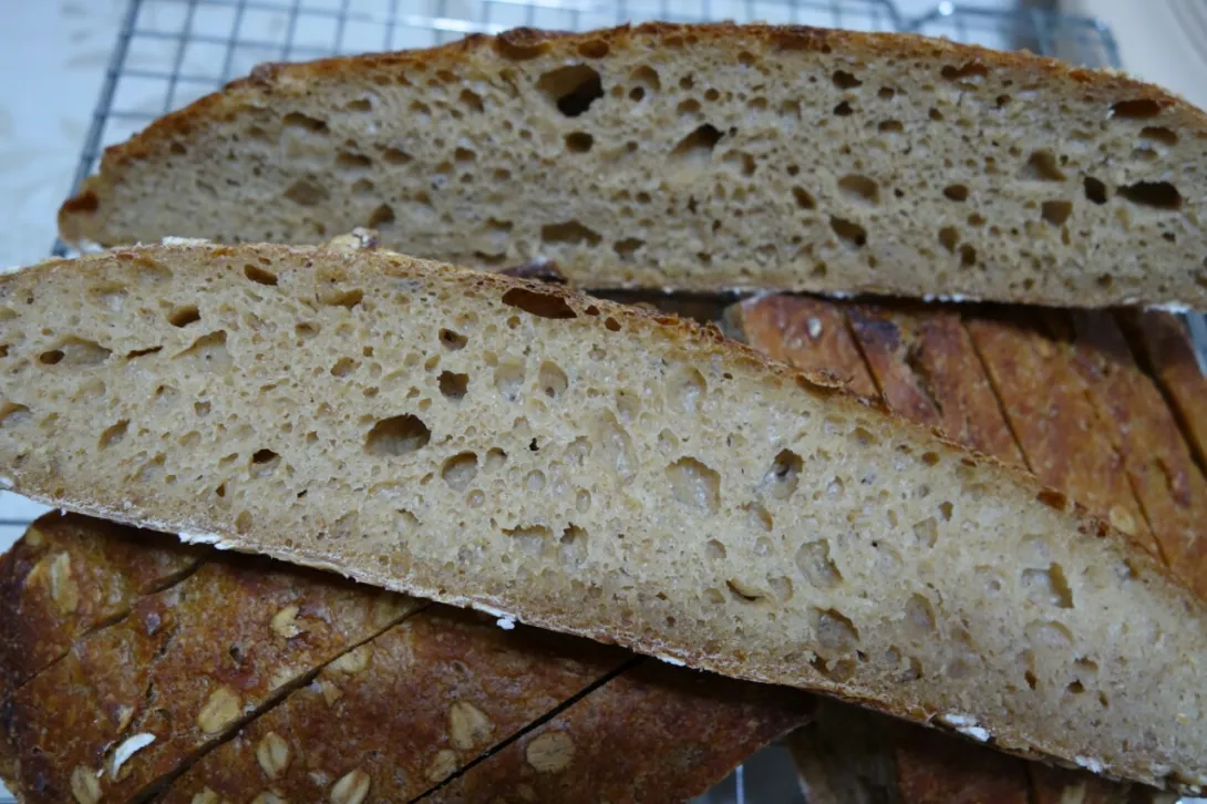 1) Instead of biga, I used a white sourdough.