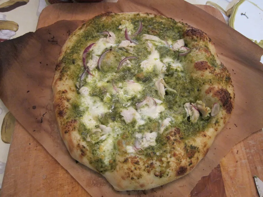 Following up on Wingnut's pizza post, here are a few shots of our pesto pizza from last night.