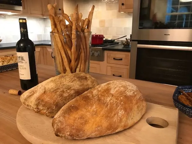 A few months ago, Jack Sturgess mentioned that a breadstick challenge stumped most of the British Bake Off contestants. I happened to be making a batch of ciabatta at the time, so I thought, why not dedicate some of the dough to breadsticks. The results were pretty good and we love a crunchy snack with our nightly glass or two of wine. Anyway, after 4 passes, I think I finally have a repeatable process that produces attractive, munchable grissini.
