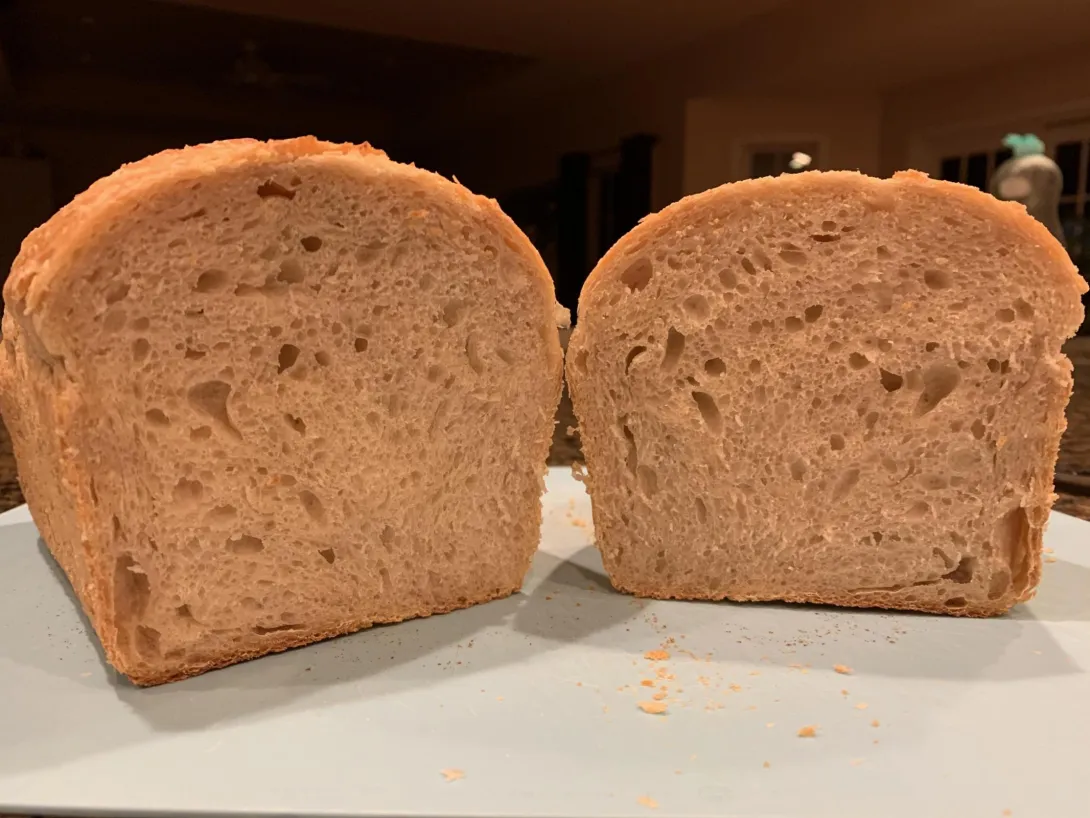 Overall, can't complain. Got decent oven spring, a nice color and crispiness to the crust, and the aroma is pleasant with just a bit of tang. I think it will taste good. Was shooting for my typical sandwich loaf type crumb, and will see tomorrow if I hit that.