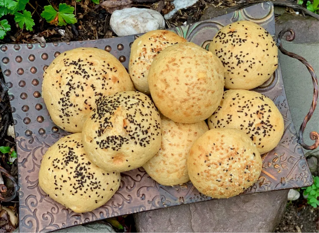 I needed to make some rolls for burgers and sandwiches and if you know me by now, adding cheese was a must :). The main flour was Kamut with some KAF bread flour thrown in for good measure. The eggs really added some nice moisture and flavor and the smoked Gouda cheese I used put them over the top. Of course if you don't like smoked cheese (like my wife who hates it), use a more mild cheese.