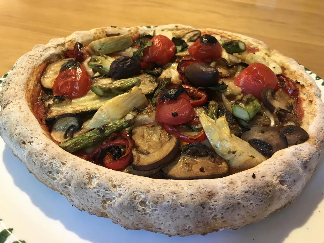 Recently I made this gluten free pizza for my younger daughter who has intolerance for the gluten and also should not eat cheese. Hence the pizza was made without cheese what is quite unusual, but it was generously topped with grilled vegetables.