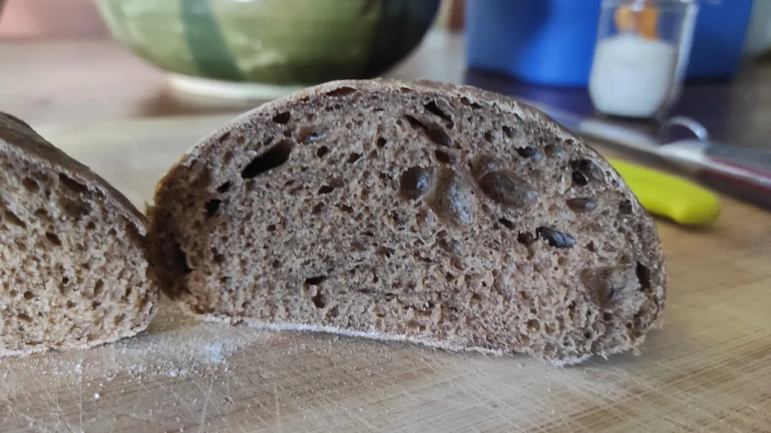 At some point I imagined that a sourdough bread made with mostly cake flour would have a delectable soft sweet crumb texture. Or at least a better 'bite' than loaves made with bread flour. Perhaps softer on the tongue, with a good sweet flavour! And without the chew or bounce that I've come to expect with lots of gluten.