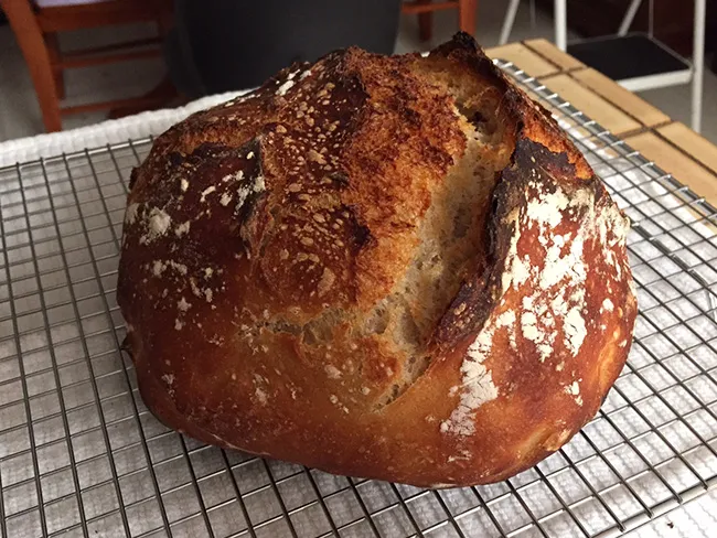 Round two for the Overnight Country Blonde. A couple of changes this time. Because last time the bulk ferment kind of over proofed and it's getting quite a bit warmer now, I decided to bulk ferment in the fridge overnight. The final mix was at 8 pm, four sessions of stretch and folds and then in the fridge just before midnight. I then took it out and left it on the counter for four hours. Here is a before and after showing what it was like when it first came out of the fridge and after 4 hours: