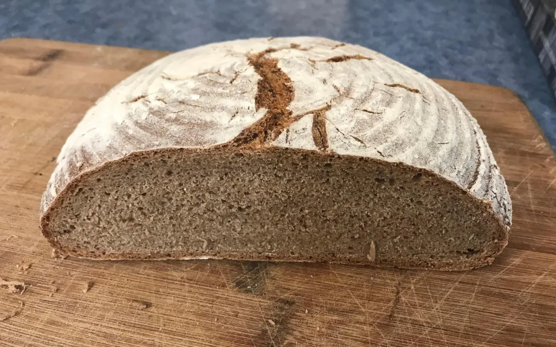A couple of weeks ago I made Hamelman's 70% rye with coarse rye meal and it was an inedible disaster, so I cut it up in chunks and froze them.